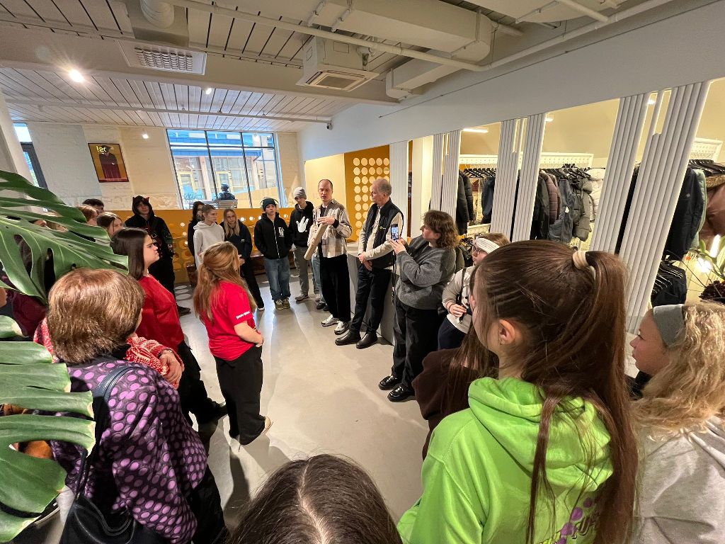 Ekskursijas pirmā pietura bija Zuzeum, kur jaunieši apmeklēja izstādi “Kosmosa kuģis Zeme”, kuru veidojis mūsu skolas absolvents Gustavs Grasis. Izstāde, balstoties uz “Voyager” misijas Zelta plašu ideju, piedāvā skatījumu uz Zemi kā kopīgu “kosmosa kuģi”, kurā cilvēce ir vienots, savstarpēji atkarīgs kolektīvs. 20. gadsimta otrās puses grafikas darbi atklāj cilvēka un planētas attiecību daudzveidību — no tehnoloģiju attīstības līdz ekoloģiskām un sociālām norisēm.