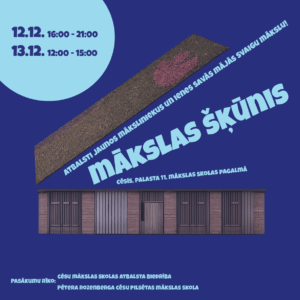Pētera Rozenberga Cēsu pilsētas Mākslas skola aicina apmeklēt mūsu ikgadējo Ziemassvētku radošo tirdziņu “Mākslas šķūnis” — īpašu svētku notikumu, kurā apskatāmi un iegādājami audzēkņu radīti mākslas darbi.