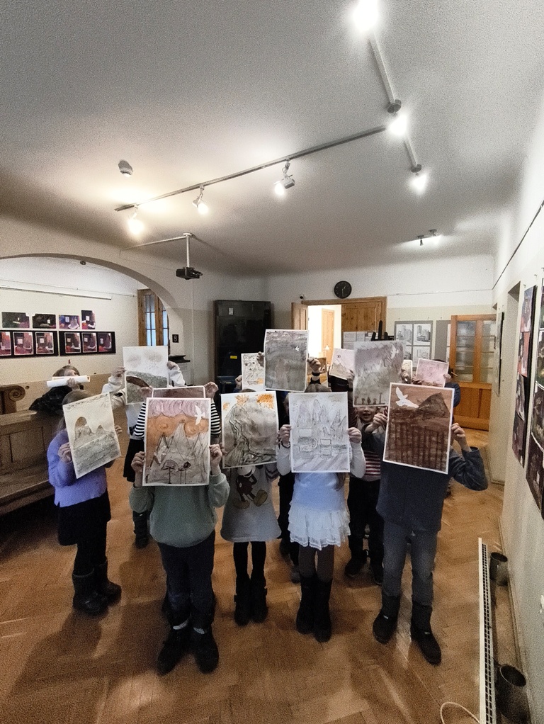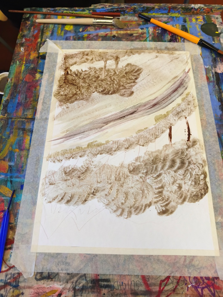 Nodarbība sākās ar kompozīcijas ieskici sangīnā, iezīmējot ainavas pamatu. Turpinājumā skolēni strādāja ar pašu gatavotiem dabas pigmentiem, eksperimentējot ar toņiem, faktūrām un materiāla uzvedību. Tika pētīts, kā krāsa klājas uz papīra, kā tā mainās atkarībā no konsistences un kādas vizuālās īpašības piemīt dabiskas izcelsmes materiāliem.